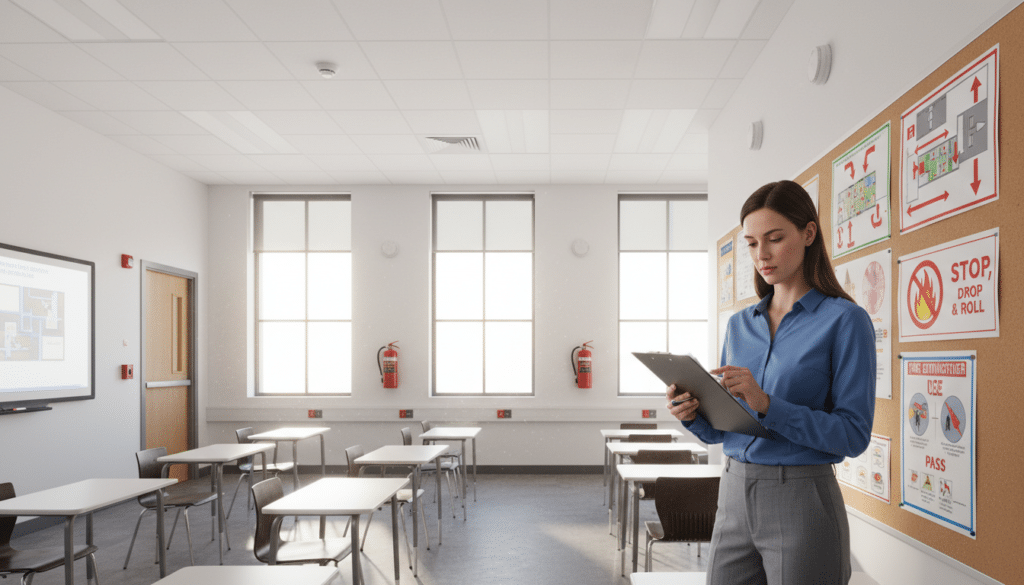 - Evakuierungsplanung: Festlegung von Flucht- und Sammelplatzplänen, die für alle Schüler und Mitarbeiter verständlich sind.